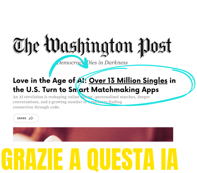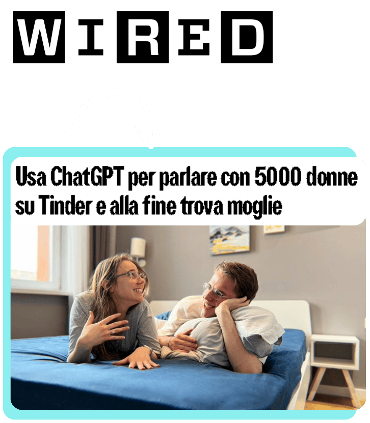 Giulio, un ragazzo di 30 anni, non riusciva mai a concludere con le ragazze e prendeva un sacco di pali. Una situazione molto comune. Ma dopo aver iniziato ad utilizzare la nuova intelligenza artificiale è riuscito a portarsi a casa una ragazza e finirci a letto in 24 ore. Oggi la sfrutta per ottenere appuntamenti in automatico e avere sempre nuove ragazze nel suo letto.